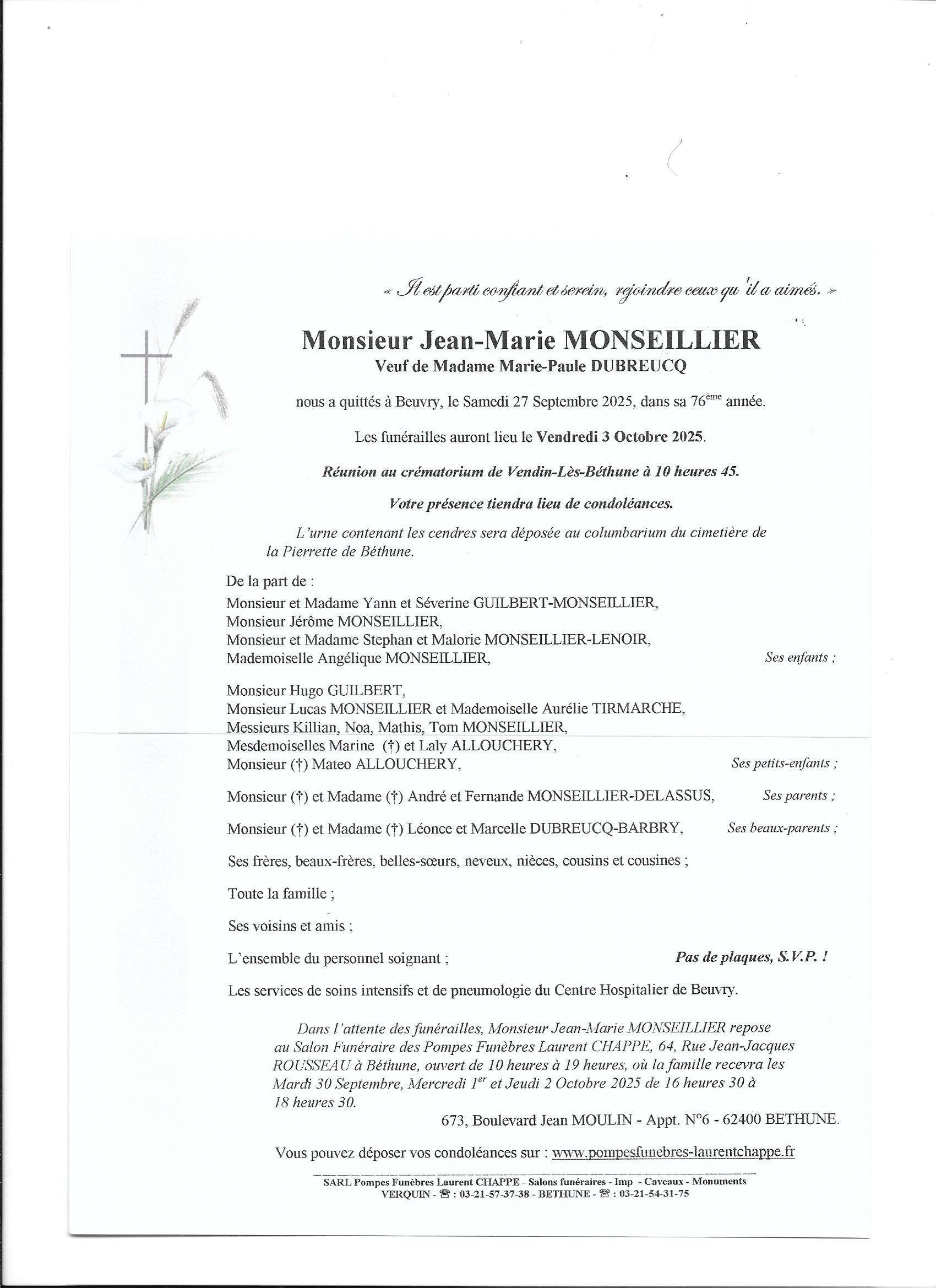 Nous vous présentons nos plus sincères condoléances. Je garde de Jean-Marie le souvenir d’un voisin sympathique avec qui nous discutions beaucoup.
