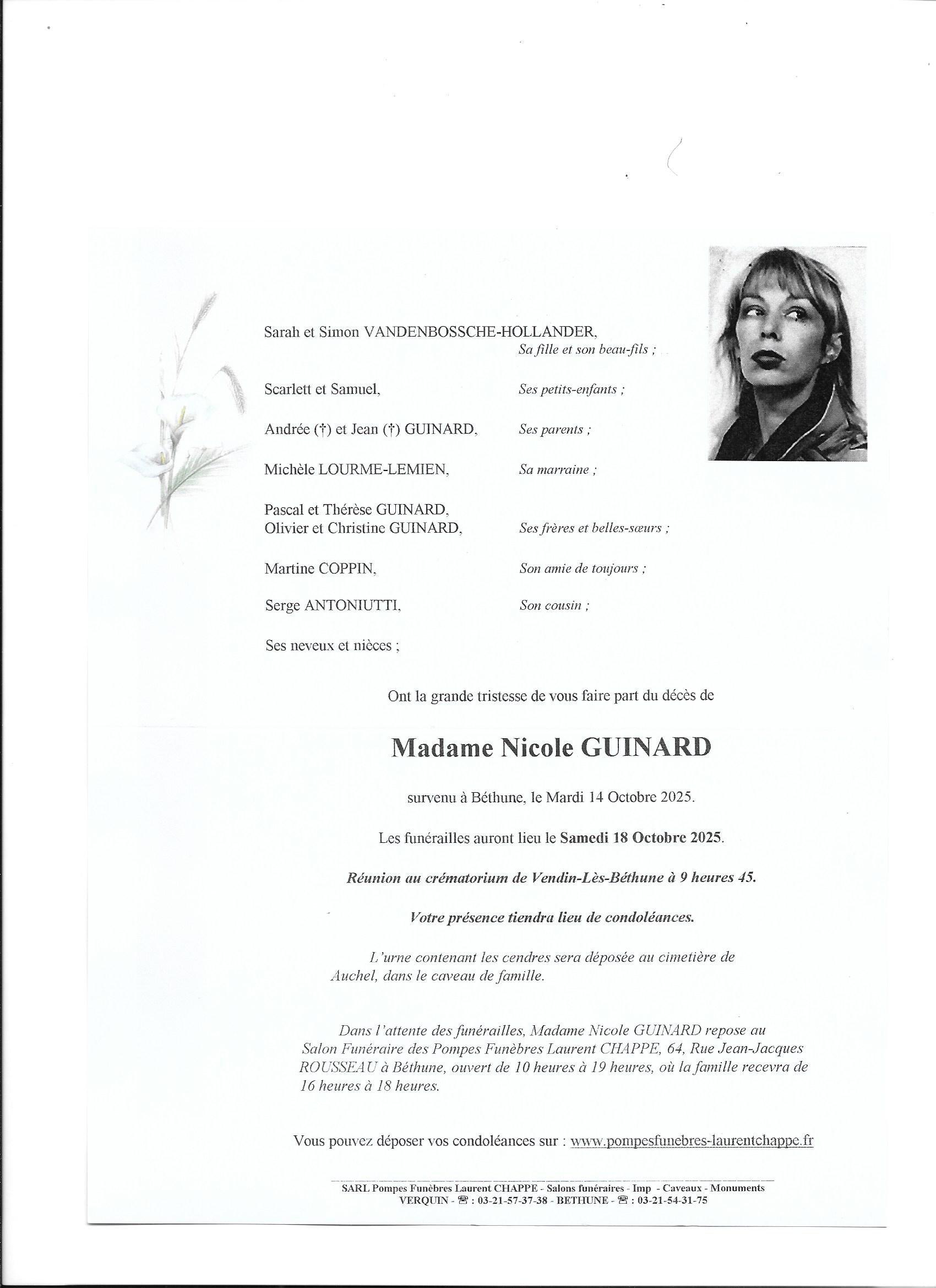 C est avec une grande tristesse que j ai appris le décès de Nicole, je garde intact tous les souvenirs partagés avec votre Maman. Je vous présente mes sincères condoléances.