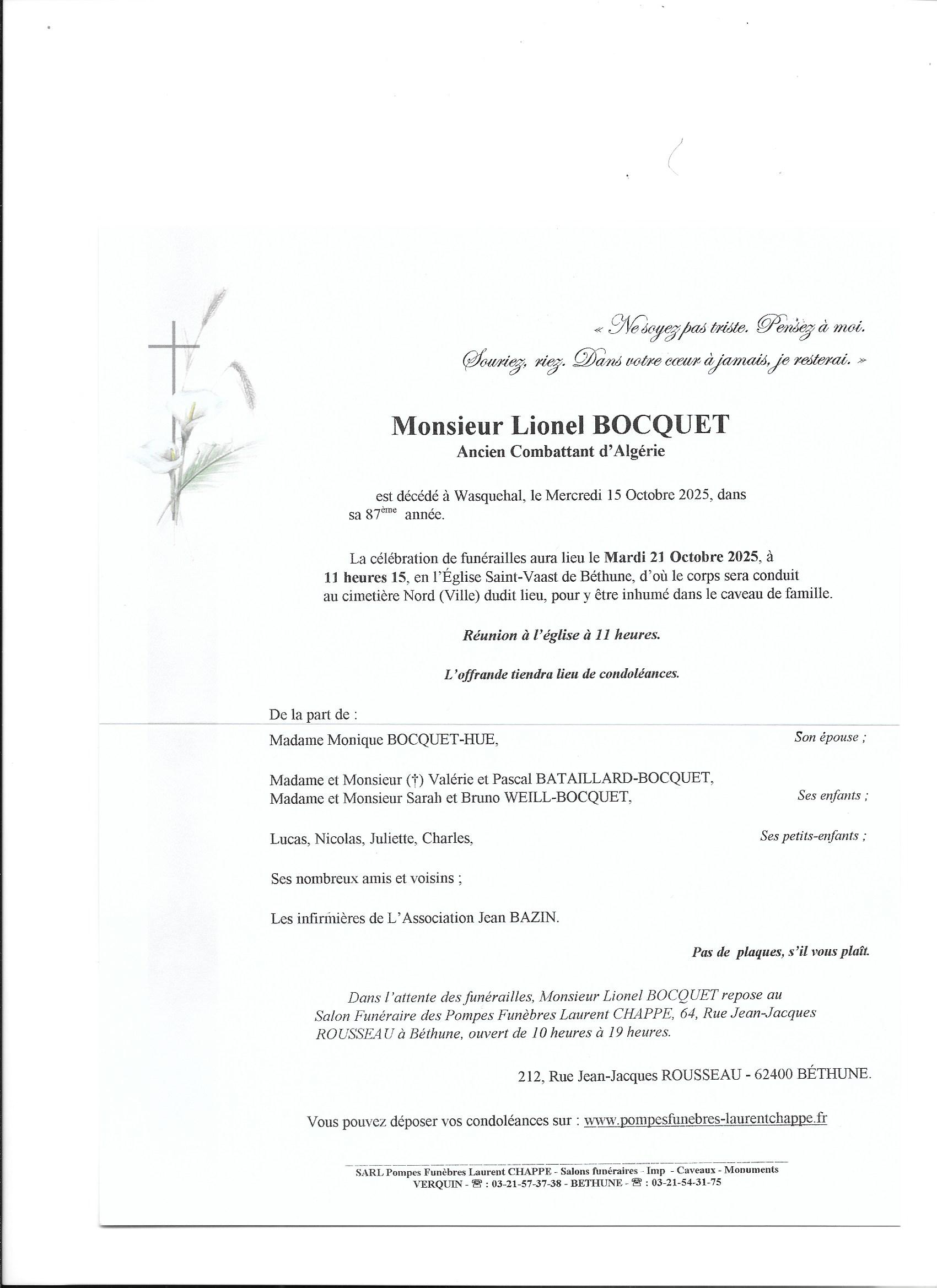 Nous garderons, Jean-Claude et moi, le bon souvenir de nos conversations joyeuses au téléphone avec notre grand cousin, avant que la maladie le touche. Ainsi que les bons souvenirs de rencontres chez notre chère Yolande, où Lionel passait souvent.