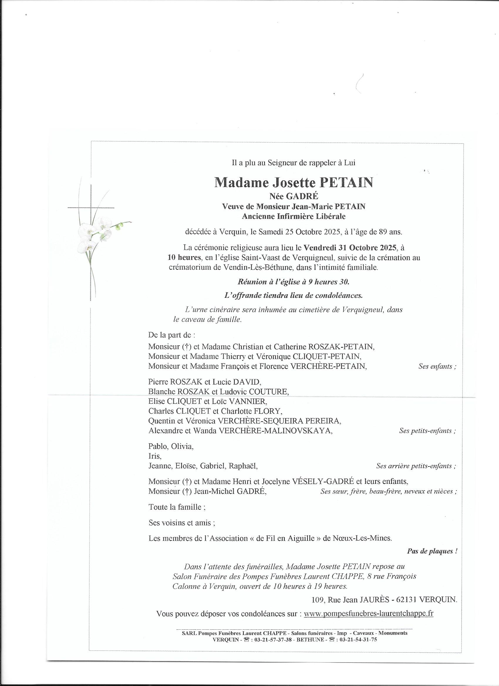 Sincères condoléances à la famille de Josette